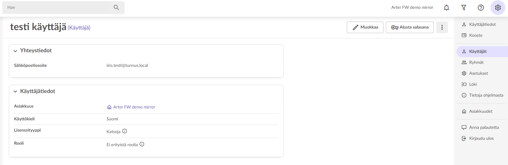 Mikäli organisaatiollasi on käytössä Arter IAM-käyttäjähallintamoduuli, voi käyttäjä itse asettaa itselleen uuden salasanan.