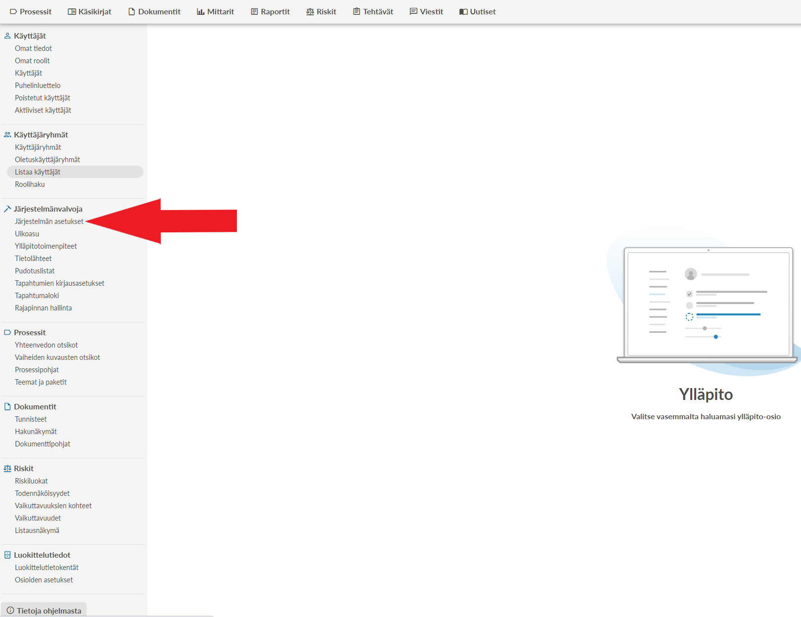 Klikkaa sivun vasemmalla olevasta valikosta "järjestelmän asetukset".